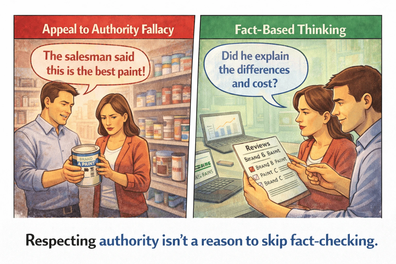 That first impulse—trusting the claim just because an authority figure said it—is the appeal to authority fallacy.